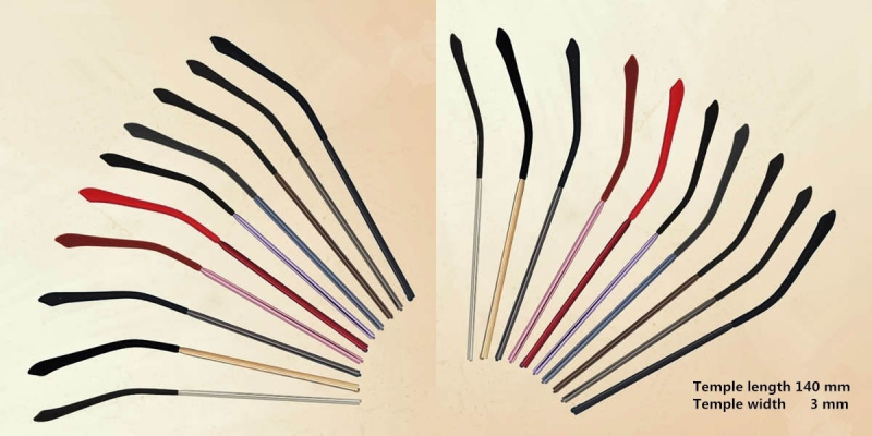 Metal aluminium eyeglasses temples have a total of ten colors, eyeglasses temples are carefully polished by advanced IP vacuum anion plating treatment, with a fine surface without particles. These eyeglasses temples color will not fade.