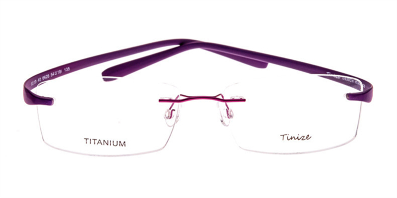 Titanium Frames made Rimless Glasses Purple Color Frames Integrating a timeless rimless rectangle design with straight lines and unique temple detailing